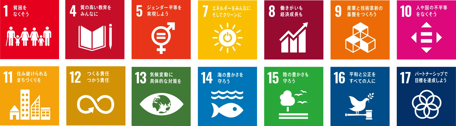 当社は持続可能な開発目標(SDGs)に賛同し、事業を通じてできるだけ多くの目標に貢献することを目指します。