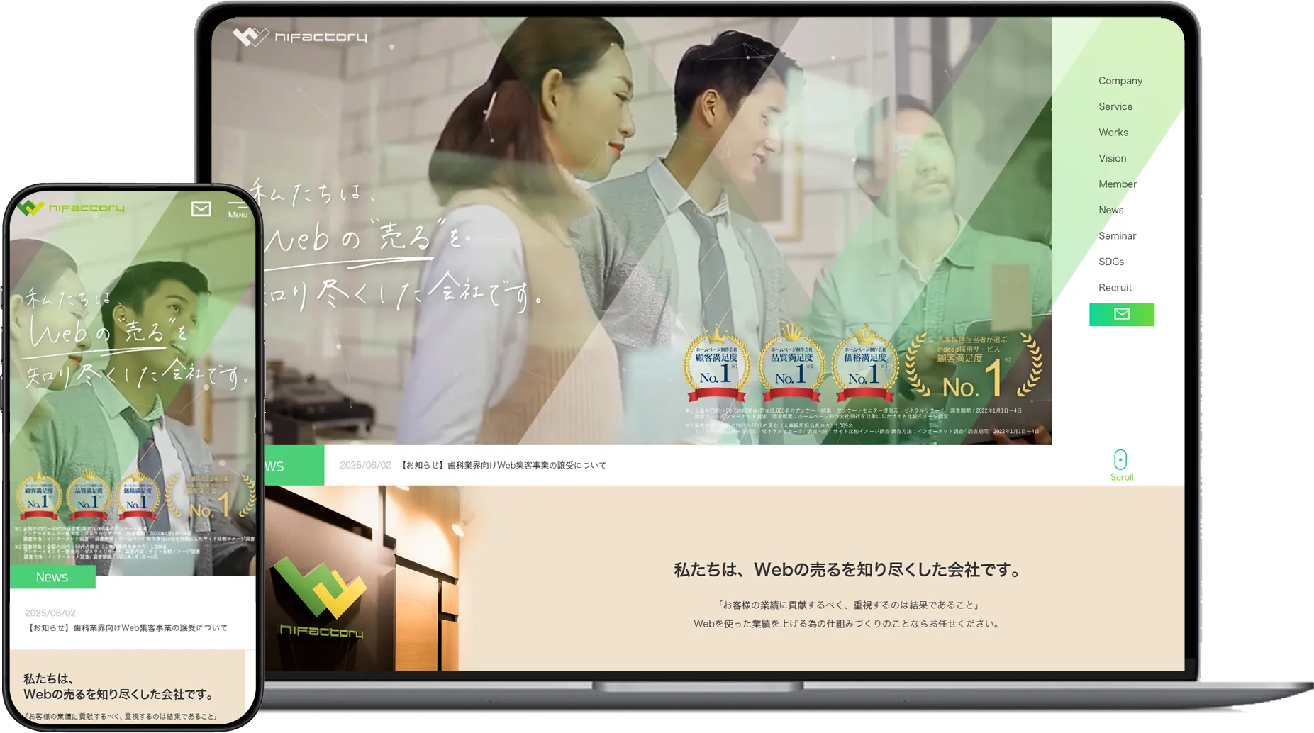 何も分からず初めたホームページが、今ではSEO対策などの運用まで自社で行えるようになりました。また、実績とイベントの更新がしやすいです。ホームページからは、数千万円以上の案件を定期的に受注することが出来るようになりました。